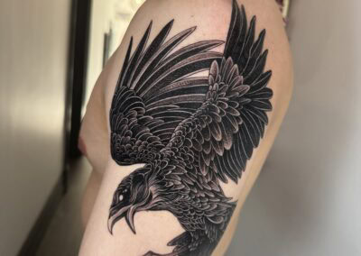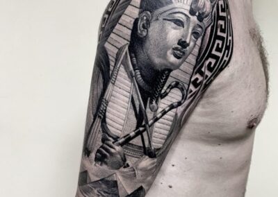 A true veteran of the industry with over 20 years of experience and the nicest bloke in the tattoo shop, Julian is competent in a vast array of styles and subject matter. The Swiss army knife of the studio, no job is too big, too small or too difficult for him to tackle. He genuinely enjoys the challenge of cover ups, fix ups or bringing the most complicated tattoo ideas to life, while always maintaining his courteous composure. After working in Melbourne for many years, he set off around the world to hone his skills and we are flattered he has now found a home with us here at Tanuki. Even though he loves a challenge, he does particularly enjoy tattooing black and grey realism, geometry and linework.